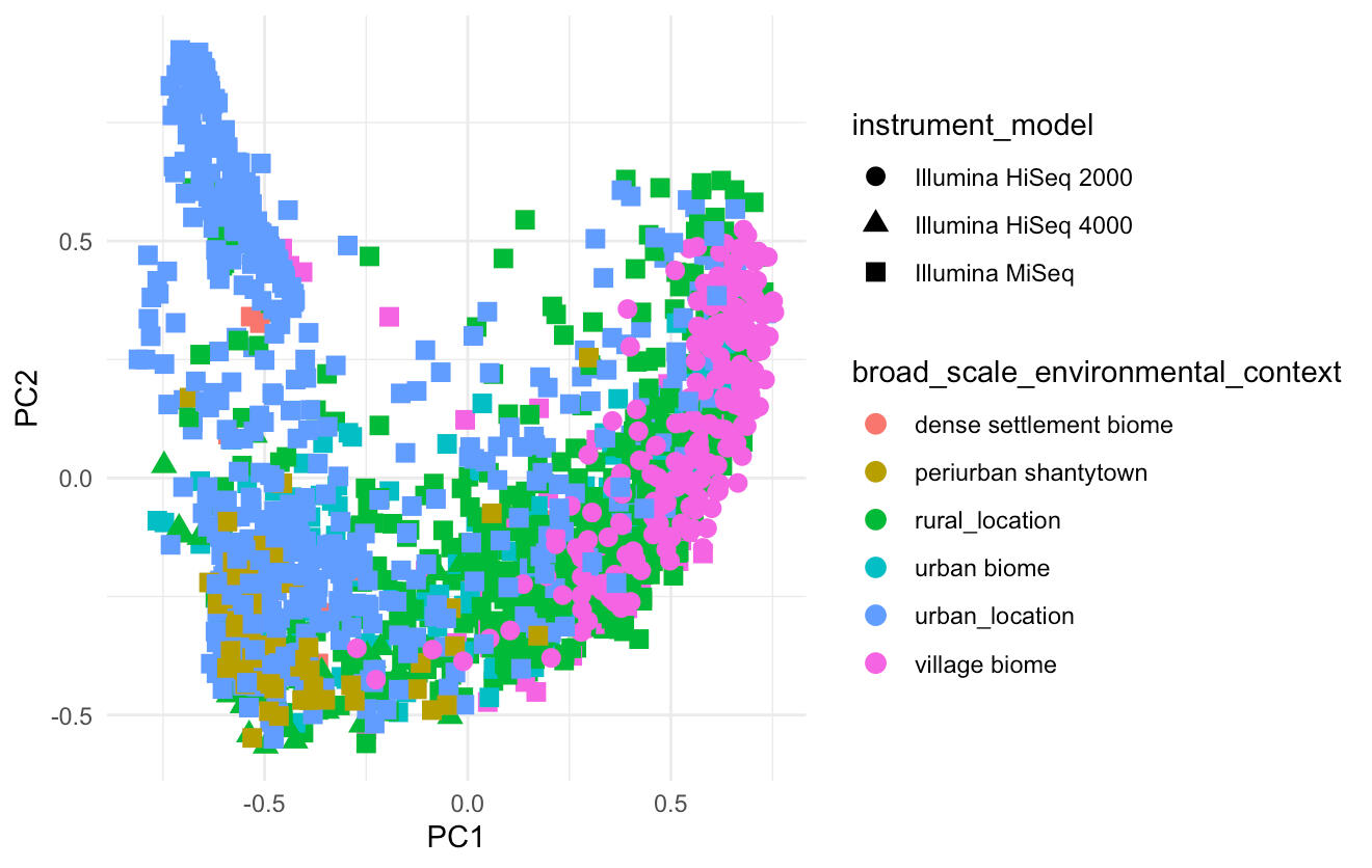 - Samples were categorized into "More Industrialized" and "Less Industrialized" based on the metadata's "broad _ scale _ environmental _ context."